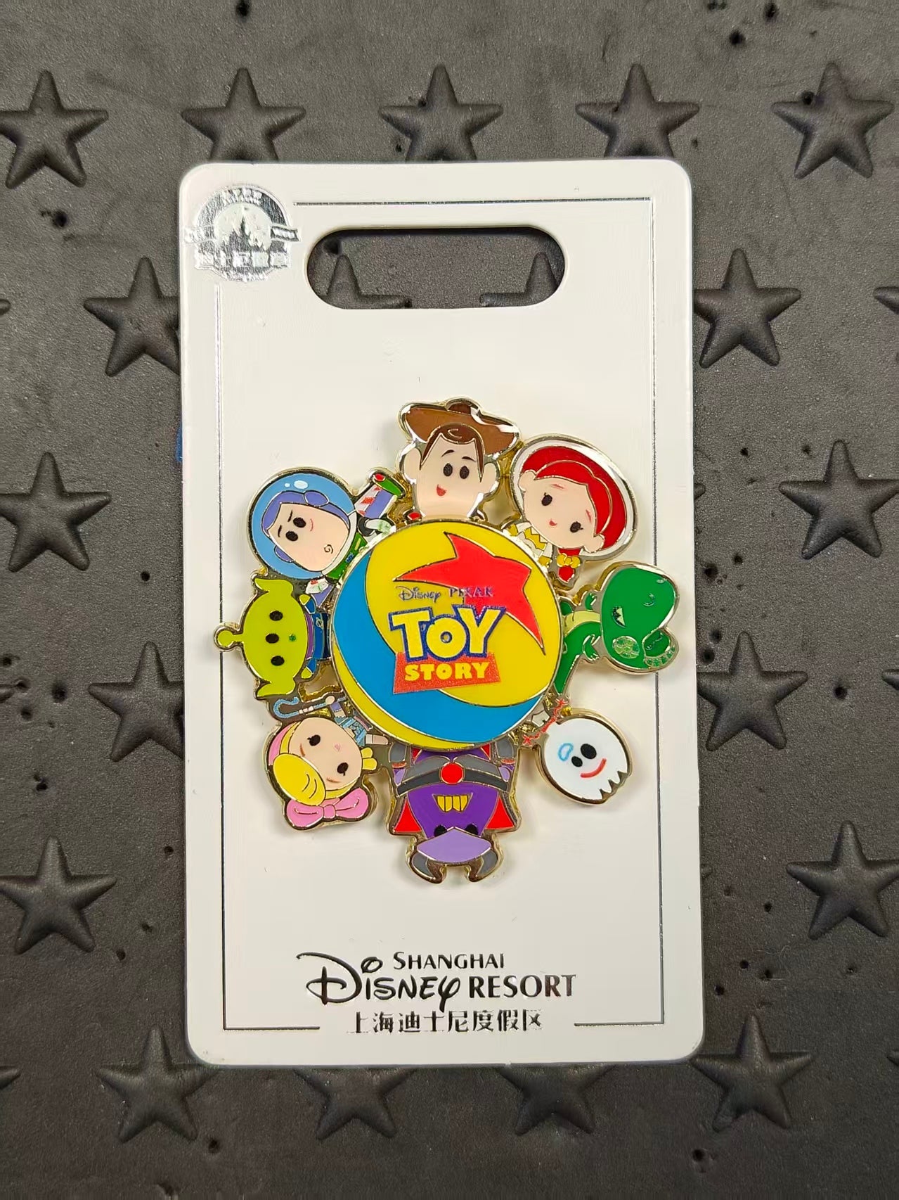 Toy Story Spinner from Shanghai. It has Woody, Jessie, Rex, Forky, Buzz Lightyear, Alien, Bo Peep, Emperor Zurg.